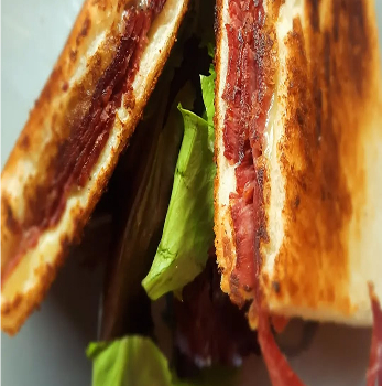 Exquisita mortadela con pistachos, brie trufado y un toque de mantequilla.